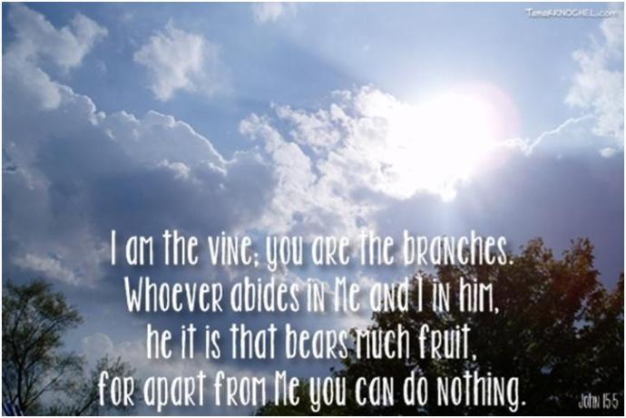 The Bible tells us that we are the Bride of Christ, when we accept Jesus we are choosing to spend the rest of our lives with Him as our heavenly husband. Now, stick with me here, after a bride and a groom become husband and wife there is a certain ritual that we all know and love… it’s called the wedding night. In that wedding night exchange the two become one flesh, not just in word alone, but in deed as well. These two halves of a single heart join and become whole, one completing the other in an inseparable bond for life. And it is in that very union that something is born created from those two halves and is knit together in its mother’s womb. When we spend that wedding night with Jesus we receive His spirit, the very spirit that He gave up on the cross after yelling “It is finished”. That Spirit comes to abide within our bellies and becomes for us a river of living water springing forth from our inner most being. His Spirit in us is the vine, the umbilical cord that connects us directly and immediately to the Father, our Creator.