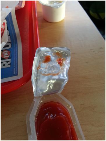 A smile in my ketchup packet during Gabe’s graduation from fifth grade celebration dinner.