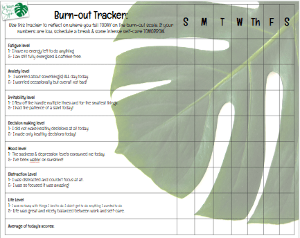 Use this tracker in your digital planner, journal, or calendar to help track your current burn-out level so you can gauge when you need a good solid break.